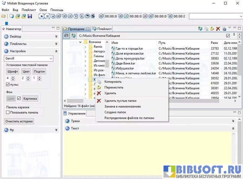 - Гибко-настраиваемая система поиска данных по содержимому .mid- и .kar-файлов;