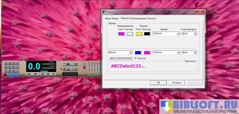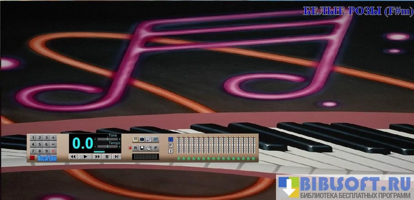 - Воспроизводит выбранный караоке-файл в интерфейсе, подсвечивает фрагменты текста песни, которые нужно пропеть в конкретный момент времени;