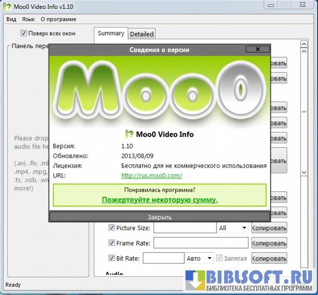Программа поддерживает множество форматов файлов, среди которых все наиболее востребованные. Установка программы занимает всего несколько минут, но следует быть внимательным, поскольку при переходе по этапам установки могут быть загружены и установлены другие программы от разработчика, чтобы Moo0 Video Info могла полноценно функционировать с нормальными параметрами.