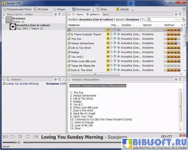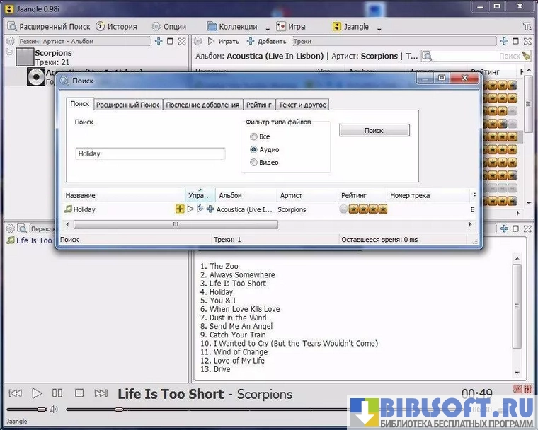 Jaangle – многофункциональный комбайн, с помощью которого легко организовать видео или фонотеку. В программу интегрированы музыкальный и видеопроигрыватель, поэтому после ее установки можно обойтись без использования дополнительных плееров.