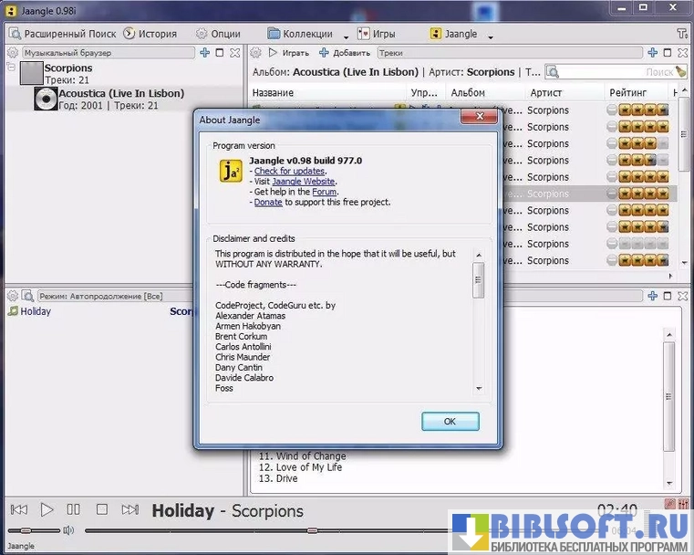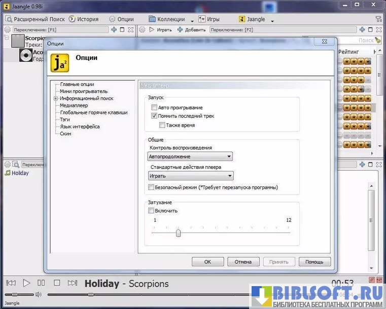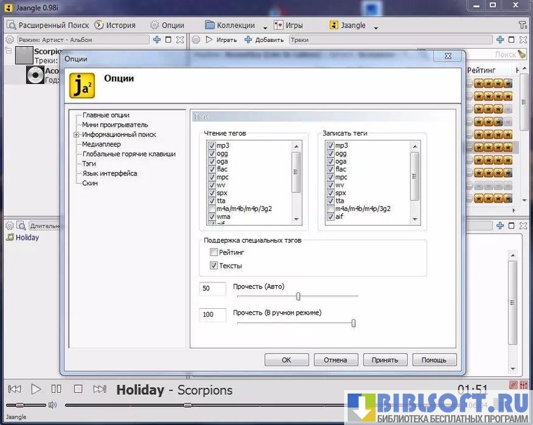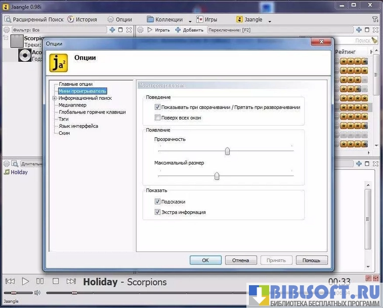 Эта программа нетребовательна к ресурсам компьютера и запускается на любой 32-разрядной версии Windows, начиная с XP. Jaangle имеет множество настроек, позволяющих пользователю настроить его «под себя»: сменные скины, редактор хоткеев, простой эквалайзер с несколькими готовыми пресетами.