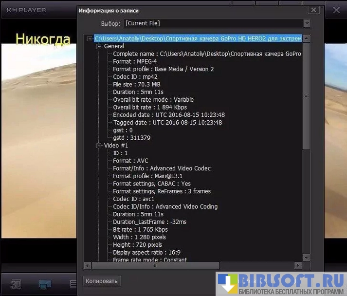 - стандартный функционал плеера (остановка, перемотка, полноэкранный режим);