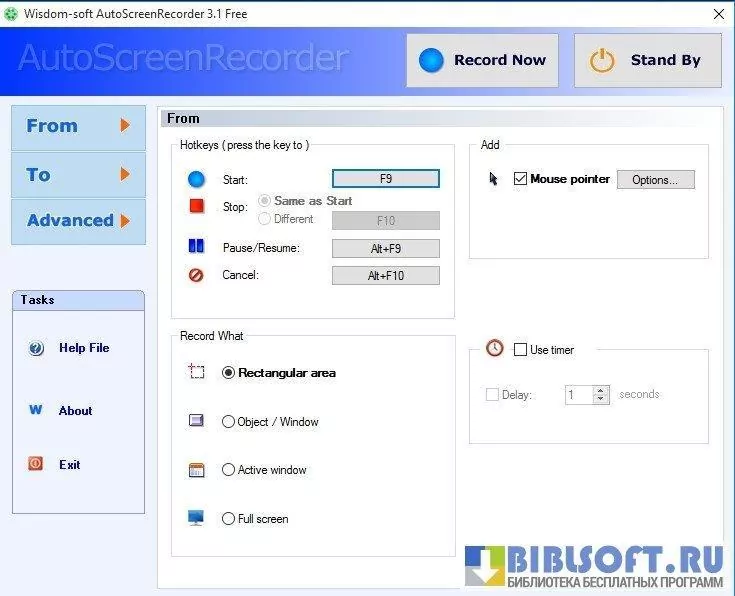 - захват или скрытие курсора и нажатий клавиш при сьемке обучающих роликов и презентаций;