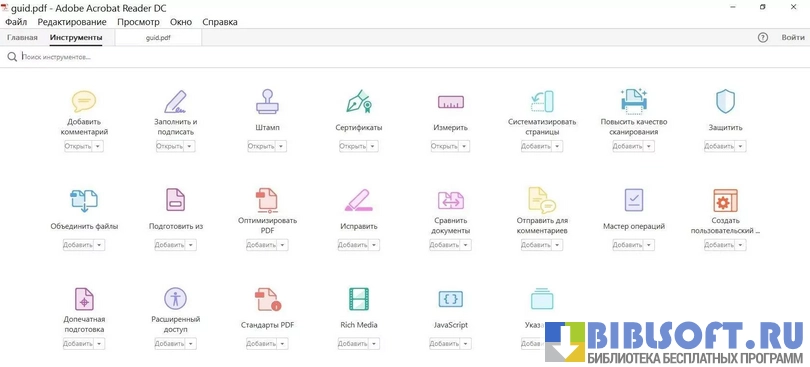 Приложение работает с текстовыми документами во всевозможных форматах, интегрирует в документ мультимедийные файлы, среди которых видео, звук и другие. Adobe Reader можно использовать для организации и чтения электронных книг, а также для просмотра файлов в формате PDF.