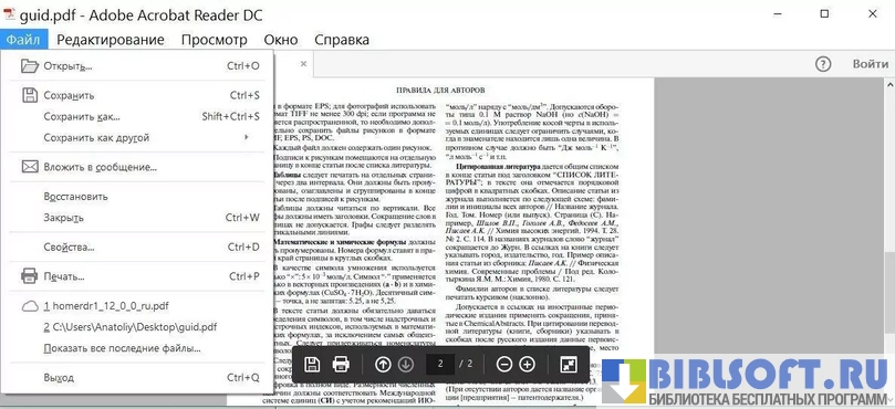 - вывод на печать документов Adobe Portable Document прямо из программы;