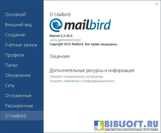 Mailbird – стильный, удобный и непритязательный к умениям пользователя «почтальон» и «личный секретарь». Комфортное использование программы обеспечивает трехоконный интерфейс. Слева направо идут: ярлыки, диалоги и цепочки активных писем. Панели сворачиваются и перестраиваются по первому требованию. Окно переписки оснащено внушительным набором инструментов для форматирования, включая возможность отправить быстрый ответ. Программа дружелюбна к дополнениям. Open Source-лицензия позволяет вносить в приложение актуальные изменения. Есть возможность синхронизации с мессенджерами соцсетей посредством авторизации (например: Facebook).