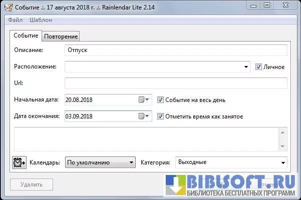 Rainlendar Lite – симбиоз интерактивного календаря и органайзера для Windows. Позволяет создавать напоминания, в т.ч. – циклические, и своевременно получать оповещения о предстоящих событиях.