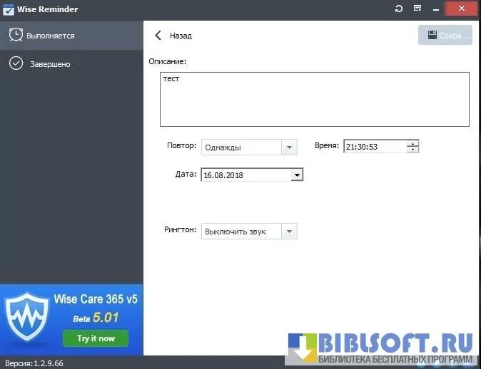 Wise Reminder - приложение для ПК, предназначенное для создания напоминаний о важных событиях и делах. Распределяйте ежедневные мероприятия с учётом занимаемого времени и не упускайте из виду мелкие события. Используйте функцию отсрочки времени в случаях, когда хотите перенести мероприятие на несколько часов вперёд.