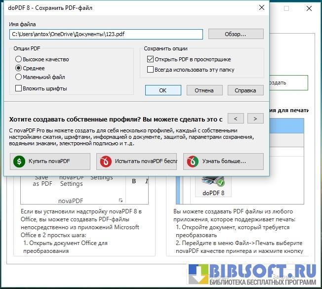 Драйвер DoPDF делает создание PDF-файлов быстрым и простым – достаточно открыть любой документ и отравить его на печать, выбрав виртуальный принтер. Программа спросит, куда сохранить файл и начнет запись, после чего файл можно отрывать любой программой, поддерживающей формат PDF.