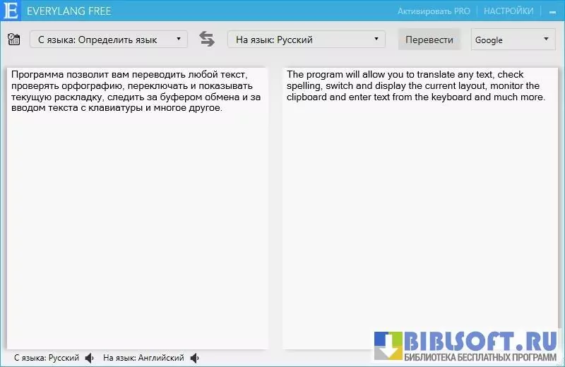 EveryLang – программа-переводчик для максимально возможной оптимизации работы с текстом. Утилита позволяет изменять и отслеживать язык ввода, проверять правописание, получать перевод с помощью возможностей Yandex, Google и Microsoft. Выделяйте необходимые сегменты текста и нажимайте необходимые сочетания клавиш при использовании функционала программы. Пользователь может заменить сочетания клавиш, заданные по умолчанию, на более удобные. Имеет наглядный удобный интерфейс. Окно для перевода включает два поля – для оригинала и переведенного текста. Предусмотрена возможность отслеживания истории копирования данных в буфер обмена.