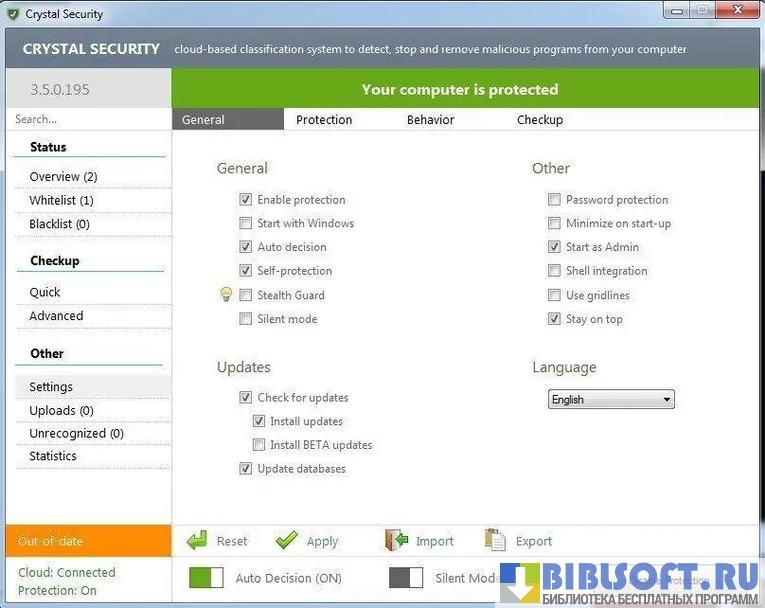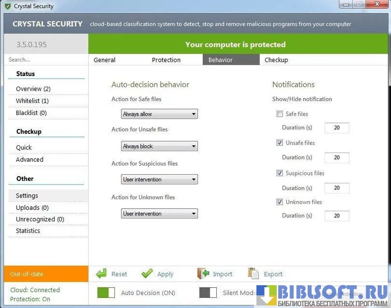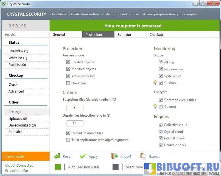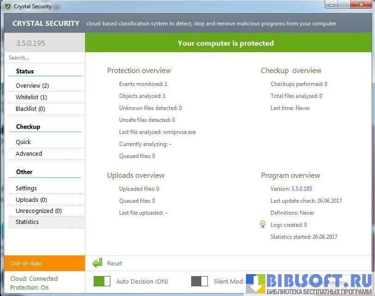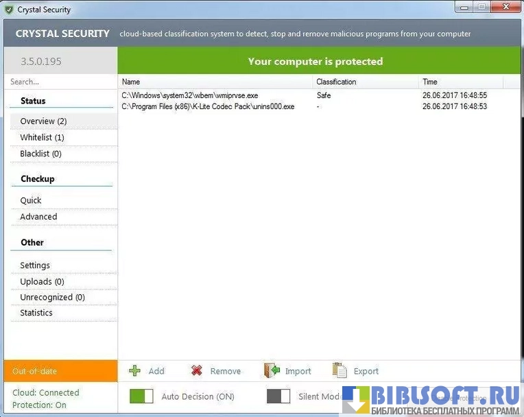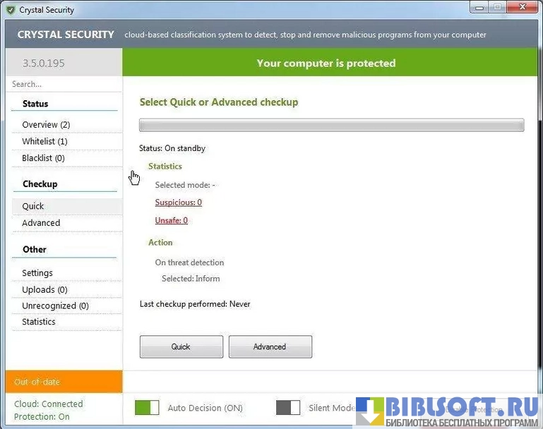 Crystal Security – компактная утилита для поиска и нейтрализации или блокировки вредоносных программ. Поддерживается всеми ОС Windows, кроме XP.