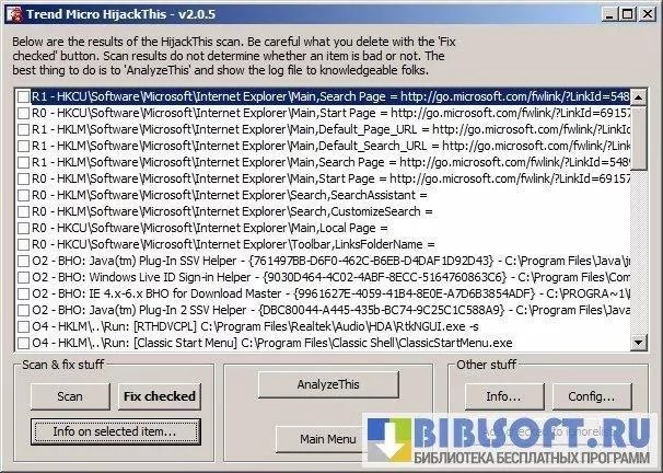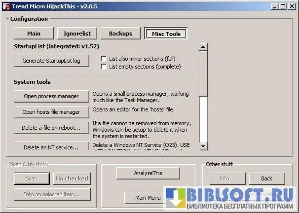 Возможности HijackThis