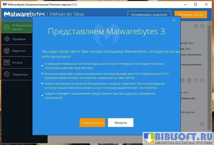 Антивирус Malwarebytes Anti-Malware Free получил множество наград от ведущих тестировщиков, поскольку способен принять меры против любого вредоносного программного обеспечения – вирусов, шпионских программ, червей, троянов, программ-вымогателей и прочего.