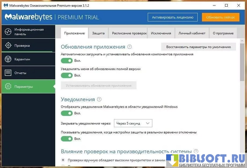 - регулярное обновление самого приложения и базы данных по вредоносному ПО;