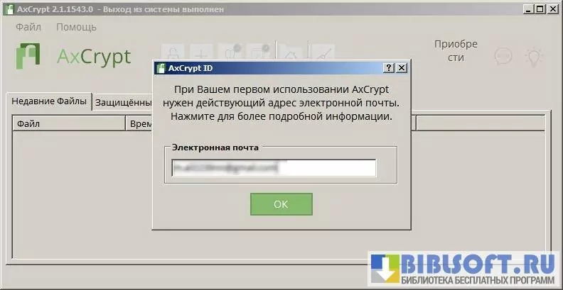 - Автоматически отправляет по защищенному шлюзу e-mail, с приглашением стать пользователем AxCrypt и инструкциями по пользованию программой, на указанный электронный адрес;