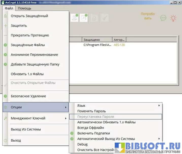AxCrypt – AES 128-/256-bit «шифровальщик» информации для Windows. Умеет шифровать так конкретные файлы, так и выбранные директории с их содержимым целиком. Может отправлять зашифрованные файлы и папки в защищенное «облачное» хранилище данных.