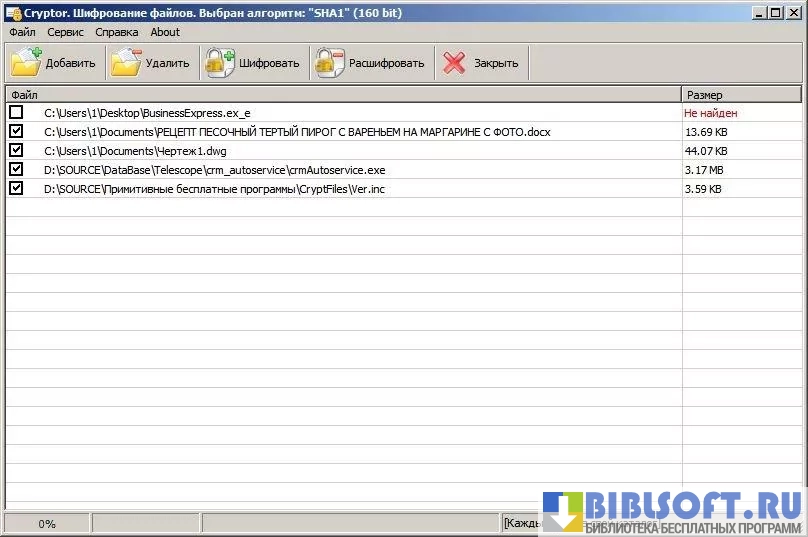 Утилита позволяет шифровать отмеченные или выделенные из списка файлы. Процесс кодирования проходит в несколько секунд. Перед запуском пользователь может открыть файл для дополнительной проверки его содержимого (чтобы ничего не перепутать). Если он не нужен, можно выполнить удаление. Если же, по ошибке, были добавлены сразу несколько документов, которые не требуется шифровать, можно пометить их галочкой, вызвать контекстное меню программы и выбрать пункт «удалить отмеченные файлы из списка».