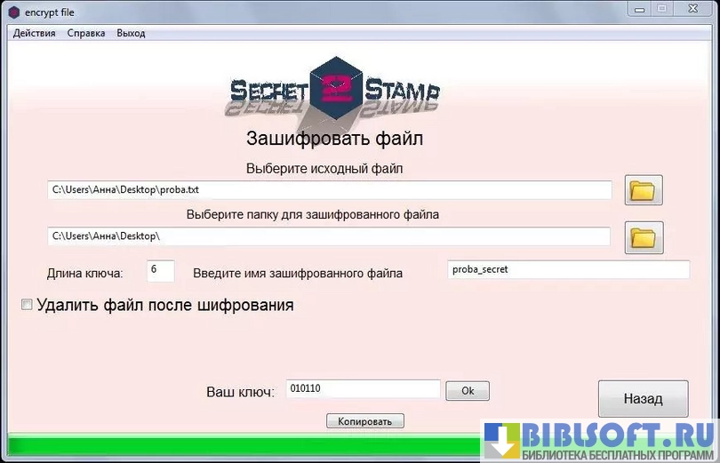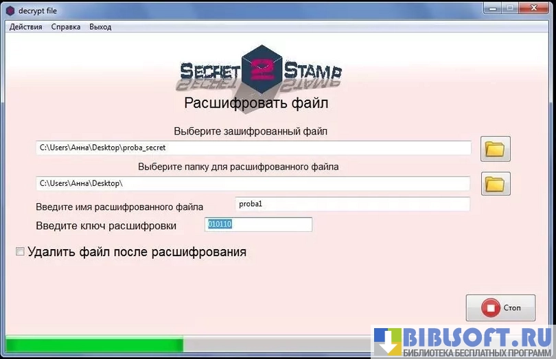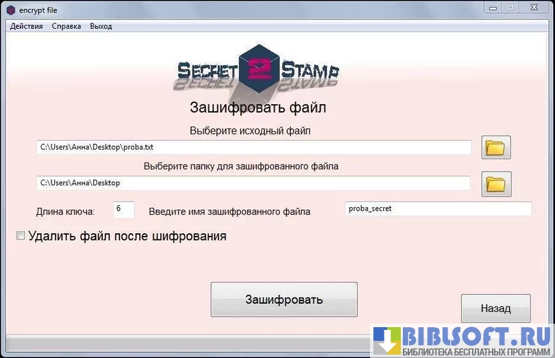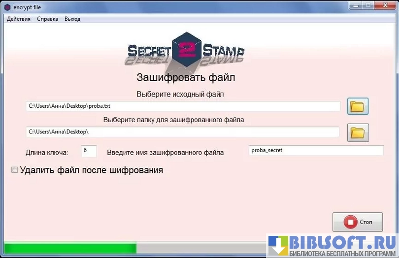 Secret Stamp - утилита, обеспечивающая шифрование любой выбранной пользователем информации, хранящейся в компьютере. Делается это с целью предотвращения несанкционированного доступа стороннего человека к файлам, содержащим конфиденциальные сведения.