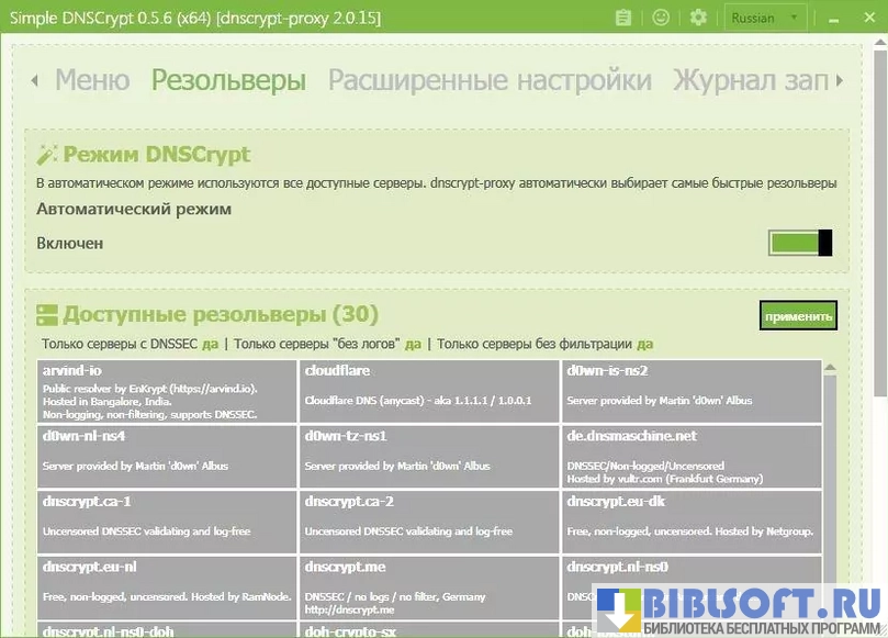 Функционал Simple DNSCrypt