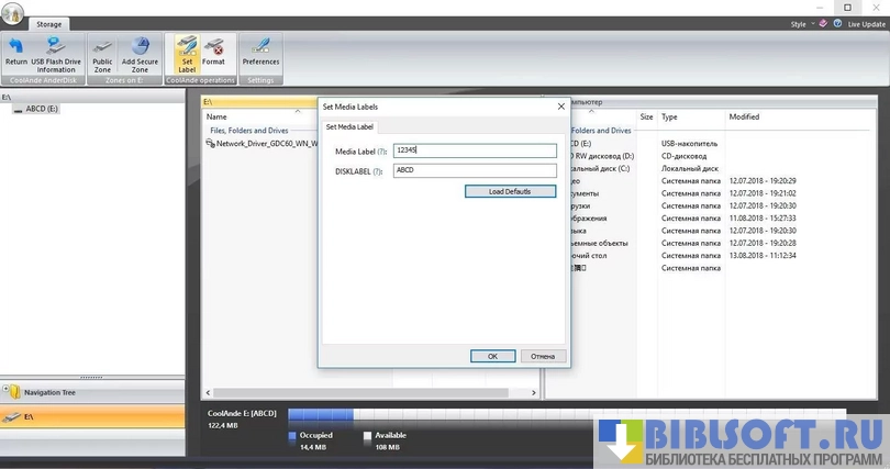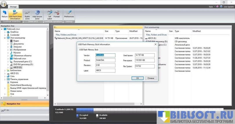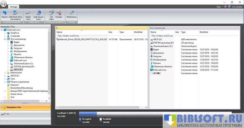 - функционирование приложение в виде двух рабочих панель с отображением всех активных накопителей;