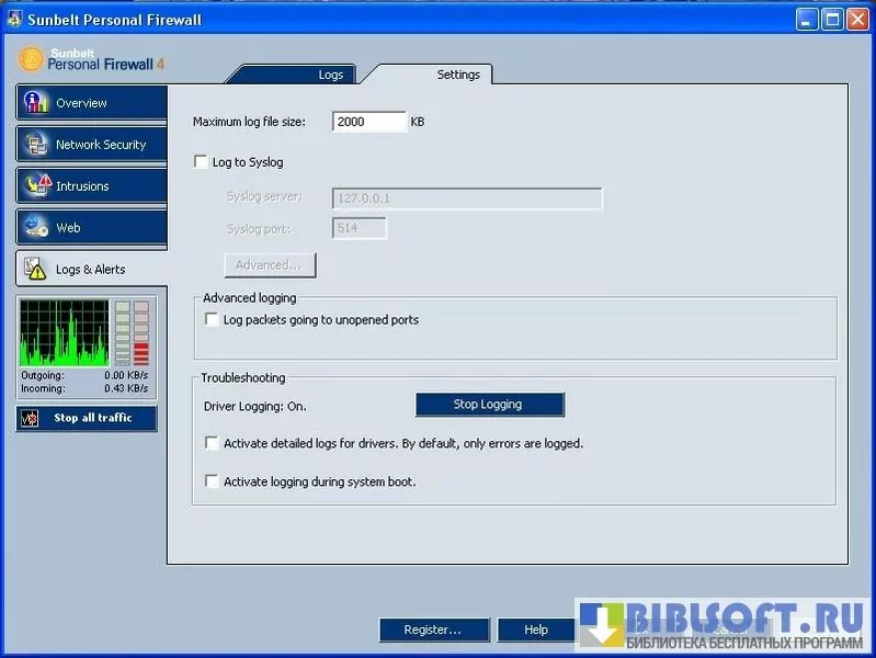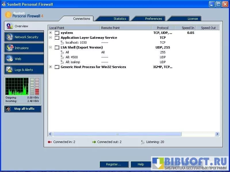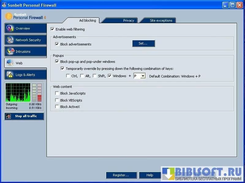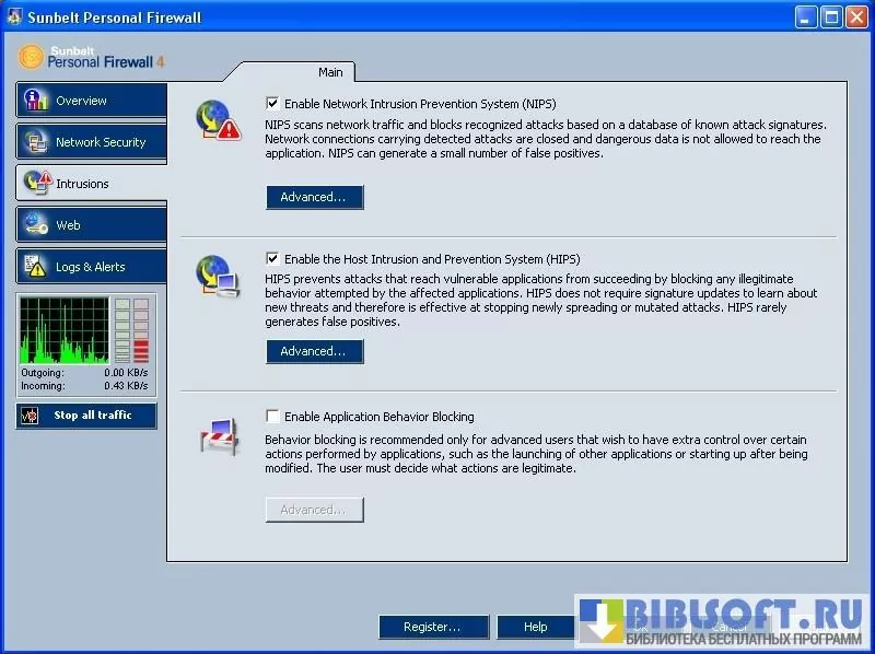 Функционал Sunbelt Personal Firewall