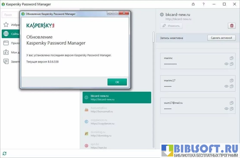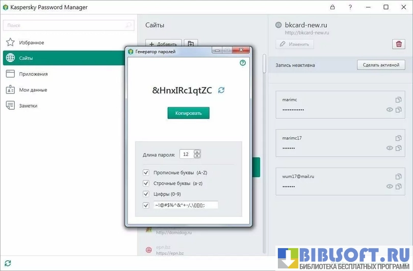 Утилита Kaspersky Password Manager способна сделать серфинг сайтов максимально безопасным. Она способна создавать надежные и сложные пароли для любых целей, а также препятствовать хищению пользовательской информации. Все данные, доверенные программе, хранятся в специальной базе данных, зашифрованной с применением инновационных технологий.