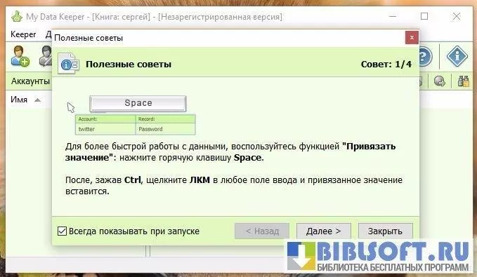 My Data Keeper - утилита для хранения регистрационных данных, паролей и других типов информации путем их шифрования. Все текстовые данные хранятся в книгах, каждая из которых защищена известным вам паролем. Книги (т.е. – ячейки в которых хранится шифруемая информация) являются переносными, поэтому работать с ними можно на любом компьютере.