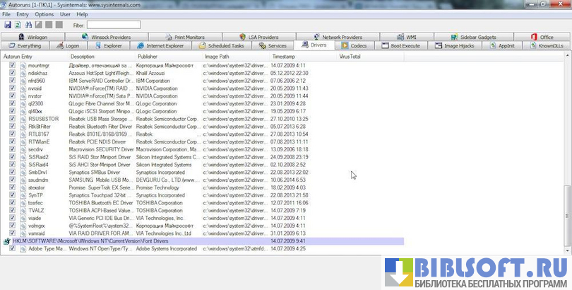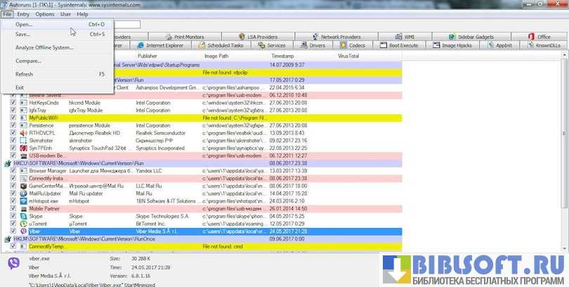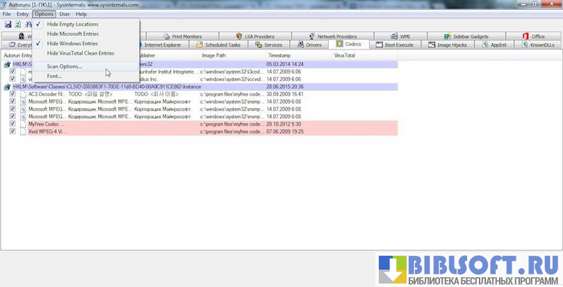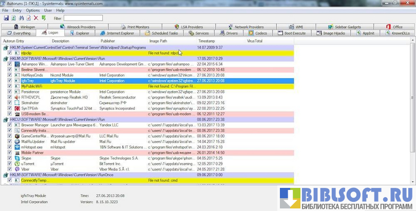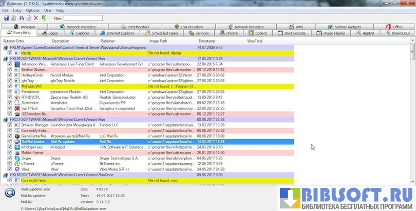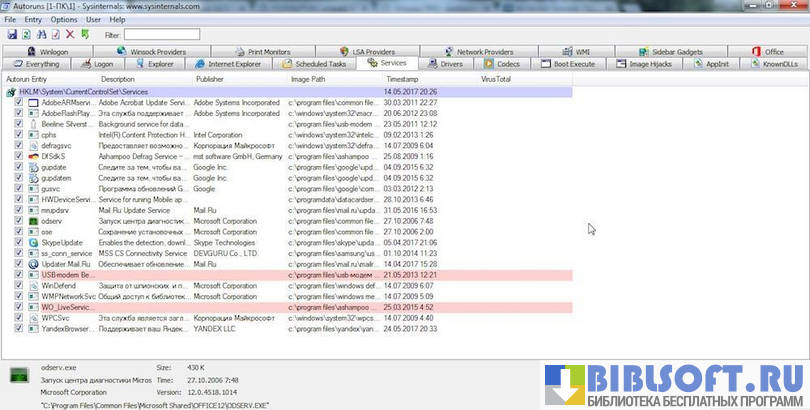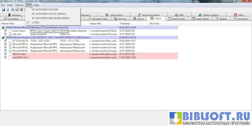 Утилита бесплатна и совместима с любыми версиями Windows. Autoruns работает в онлайн и оффлайн режимах. При желании пользователь ПК может отключить ненужные на данный момент службы, кодеки, программы.