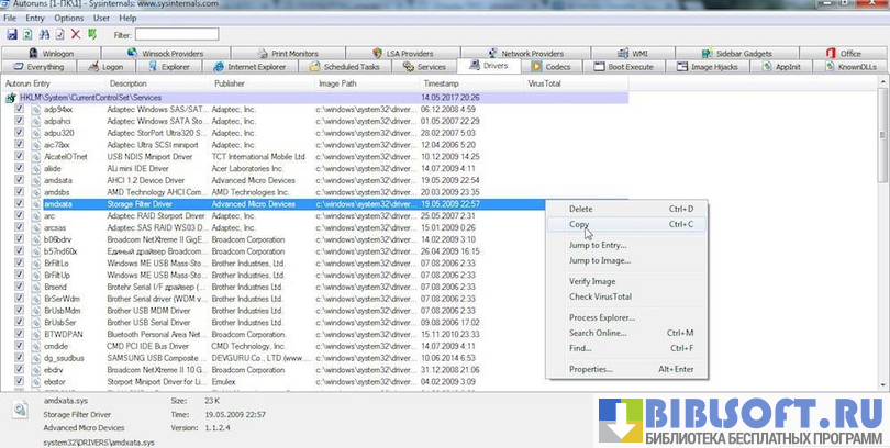 В Autoruns вы можете проверить все установленные и работающие драйверы системы, виджеты, кодеки. Вы видите всю информацию о запущенных службах, запланированных задачах системы, подключенных принтерах,установленной ОС и программах. Например, во вкладке Everything есть все значения из других вкладок. Logon показывает все элементы автозагрузки для текущего пользователя из папки Autorun. Во вкладке Explorer отображаются расширения, которые используют оболочку системы и т.д.