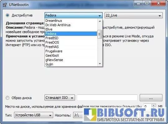 UNetbootin – программа для создания Live USB систем BSD или Linux.
