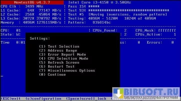 Функционал Memtest86+