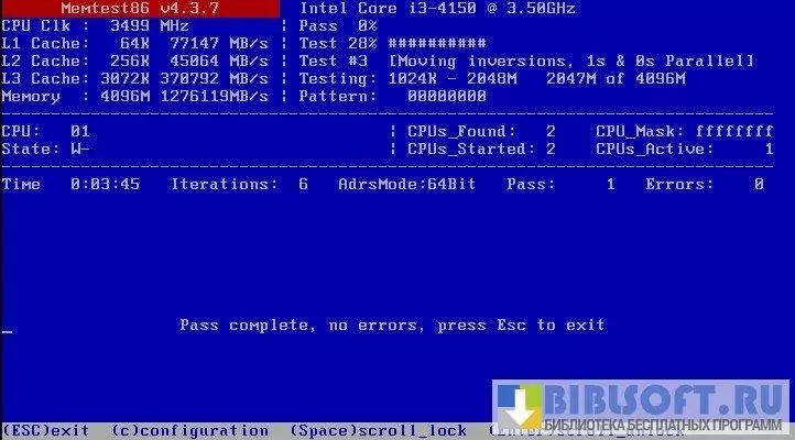 Memtest86+ - программа, использование которой способно эффективно решить задачу тестирования памяти. Запуск бесплатной утилиты позволит провести диагностику оперативной памяти (ОЗУ), выявить неправильно работающие планки памяти и прочие ошибки. Приложение рекомендуется к использованию в следующих ситуациях: