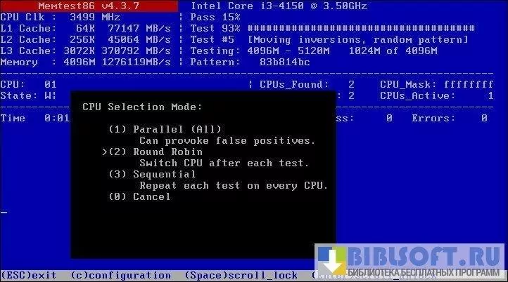 На первом этапе программа запишет повторениями весь объем оперативной памяти при помощи предварительно подготовленных блоков. Далее Memtest86+ переходит к считыванию и сверке всех записанных данных с прочитанными. Процесс осуществляется за 2 прохода: от младшего адреса к старшему и в обратном порядке. Для результативного поиска всех имеющихся ошибок процедура повторяется. Количество предусмотренных тестированием проходов выставляется в настройках приложения.