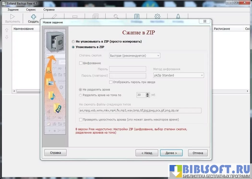 Функционал Exiland Backup Free