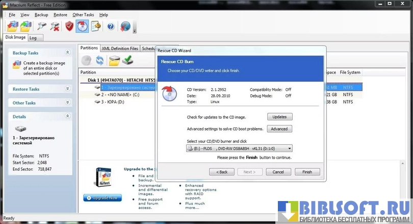 Macrium Reflect – сервисная утилита для Windows, создающая резервные копии указанных данных и/или образы жестких дисков на лету – без необходимости перезагрузки. Умеет производить многоуровневое сжатие резервируемой информации и создавать бэкапы по расписанию.