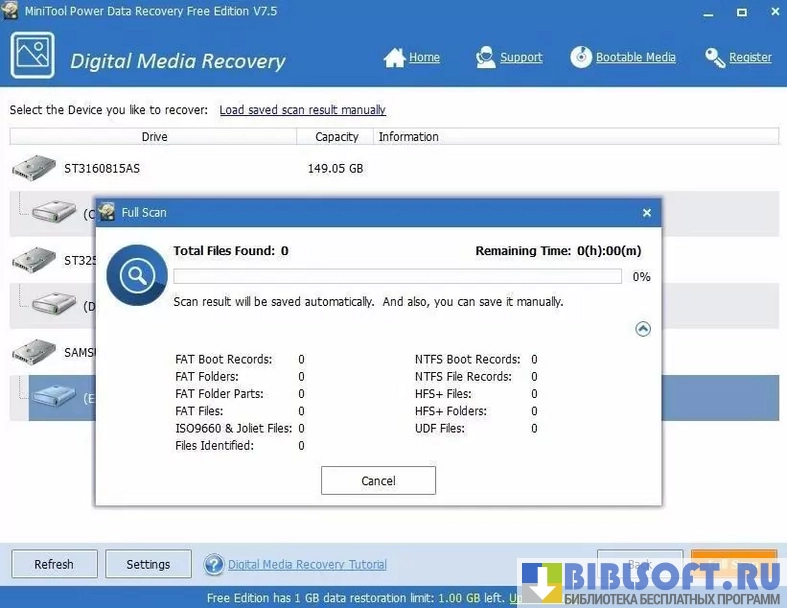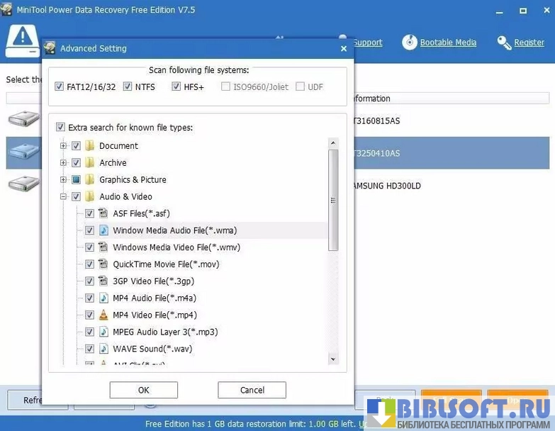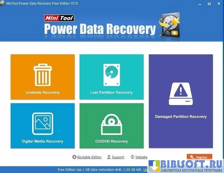 Утилита поставляется с набором инструментов для восстановления данных объемом до одного гигабайта. Она может реанимировать: