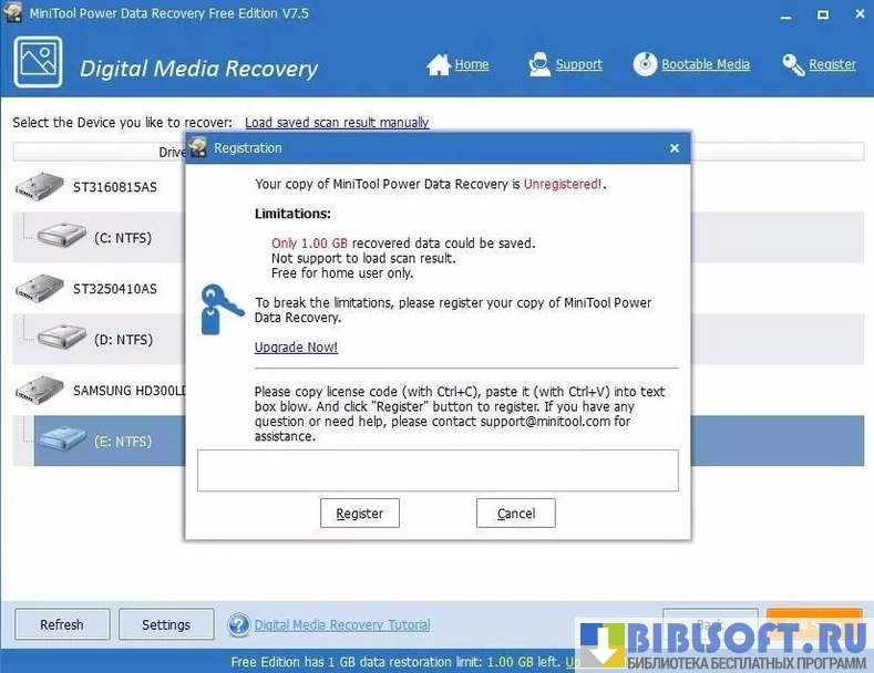 - Ограничения в сохранении объема восстановленных файлов (до 1 Гб) в случае работы с незарегистрированной программой;