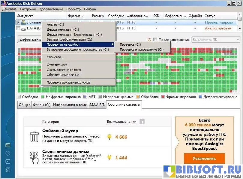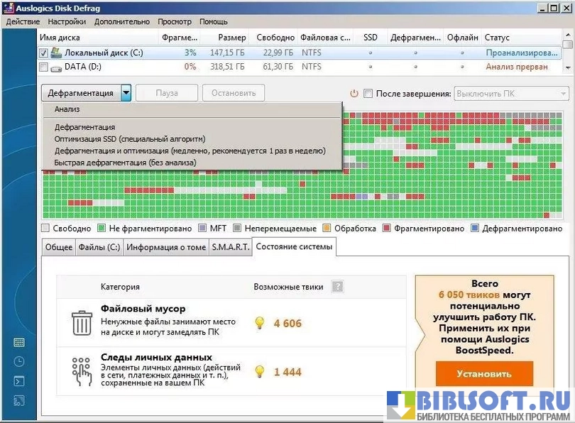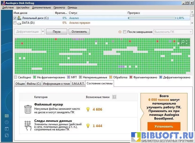 Auslogics Disk Defrag – утилита-твикер для дефрагментации и оптимизации жесткого диска. Распространяется автономно или в пакете Boost Speed от Auslogics.