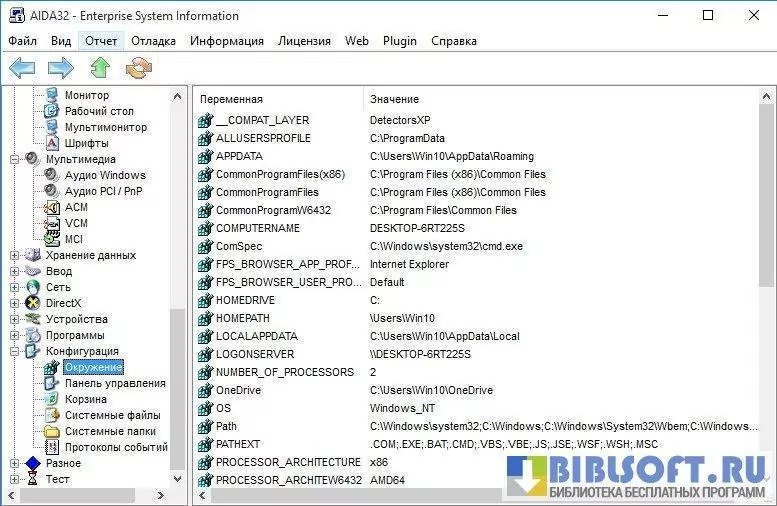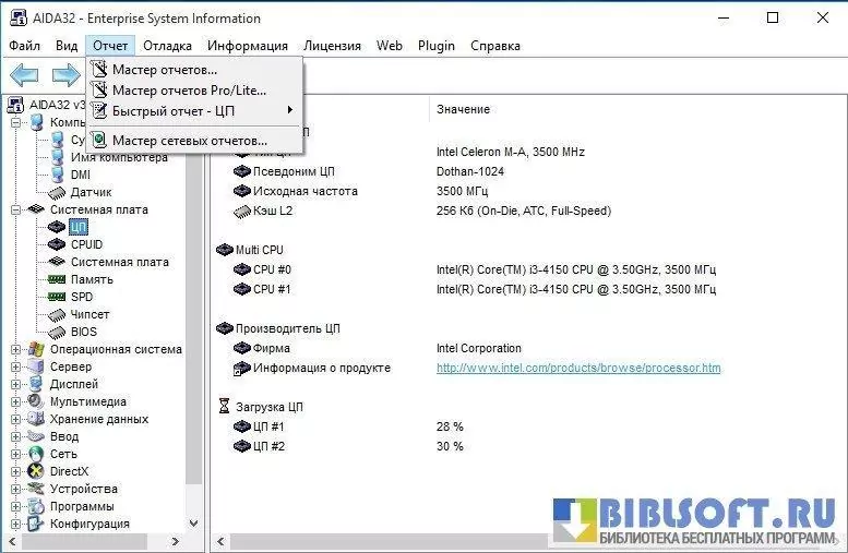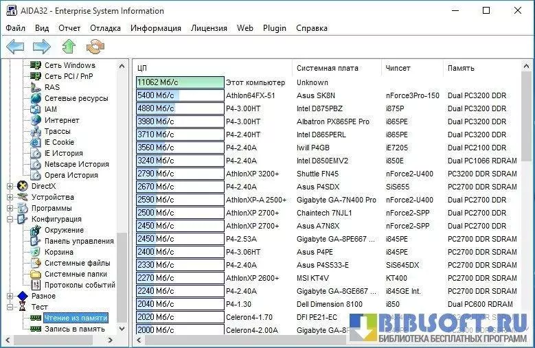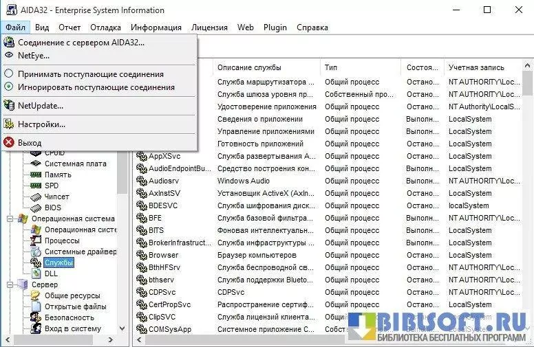 AIDA32 – профессиональная программа для получения полной информации о программной и аппаратной составляющих компьютера.