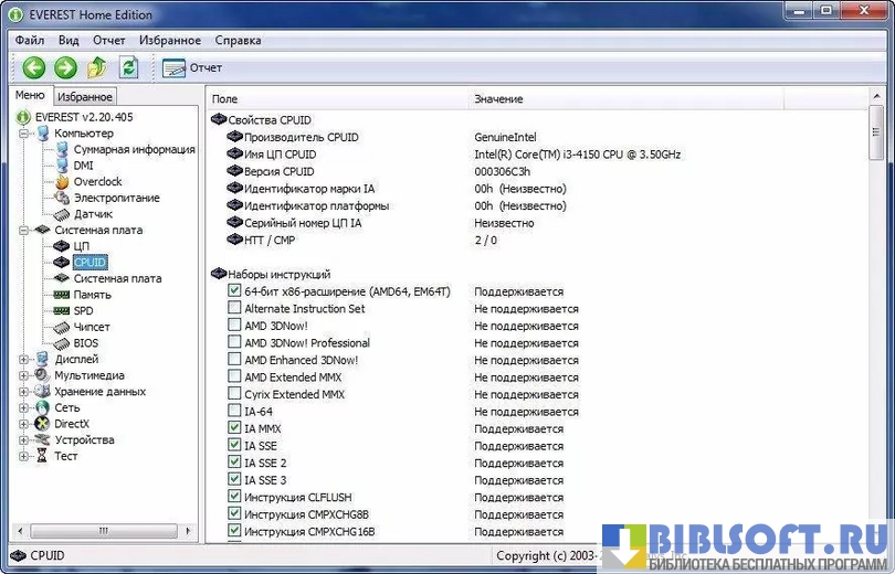Everest анализирует конфигурацию оборудования, передавая пользователю данные о: