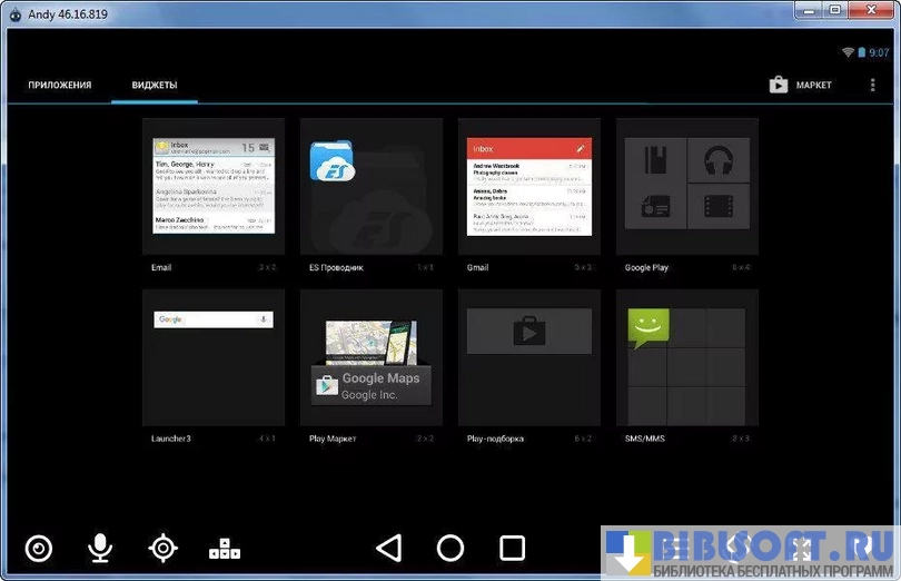 - в эмулятор встроена функция работы с Play Market, Multi-Touch и других андроид-приложений;