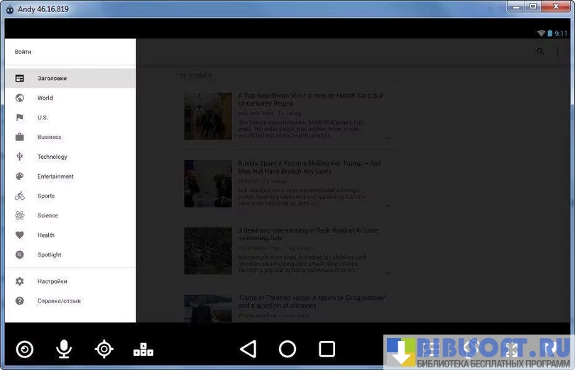 Andy OS - программа, эмулирующая работу платформы Android под операционной системой Windows.