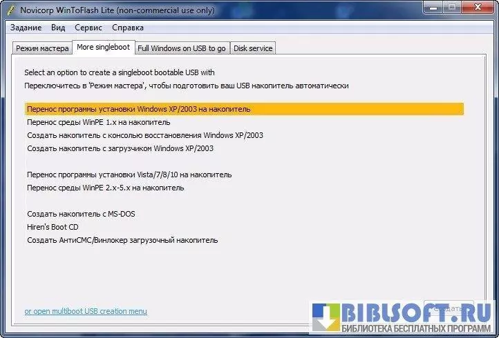 С помощью утилиты WinToFlash можно создавать загрузочные Flash USB с образов установочных или загрузочных дисков, содержащих программы диагностики и восстановления операционной системы.