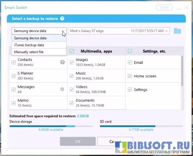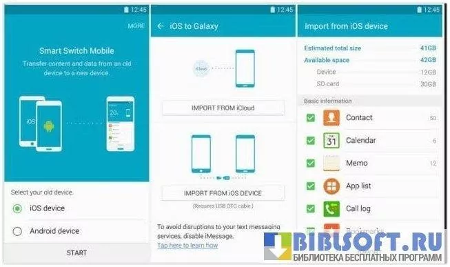 Функции Samsung Smart Switch