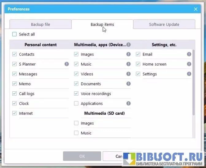 - обмен информацией и файлами между смартфонами Samsung и ПК (мультимедиа-контент, контакты, заметки, сообщения, календарь, журнал вызовов, исполняемые файлы и т.д.);