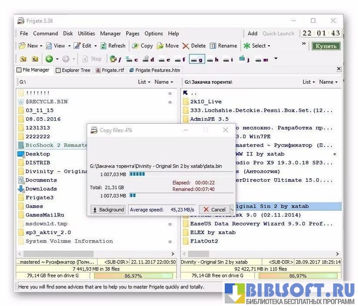 - удобный двухпанельный интерфейс;