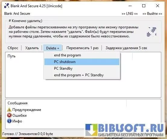Приложение Blank And Secure позволяет стирать файлы с HDD и flash носителей, исключая возможность восстановления с помощью специализированного ПО.