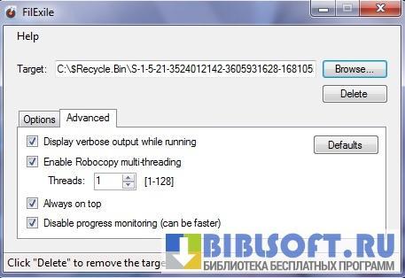 FilExile умеет обходить настройки безопасности системы, что позволяет ей обрабатывать даже важные системные каталоги. При этом удаление осуществляется очень быстро (скорость выполнения программой поставленной задачи зависит от размера удаляемого файла и процесса, которым он занят).