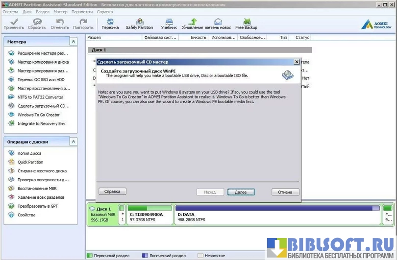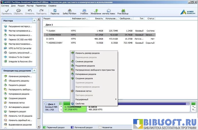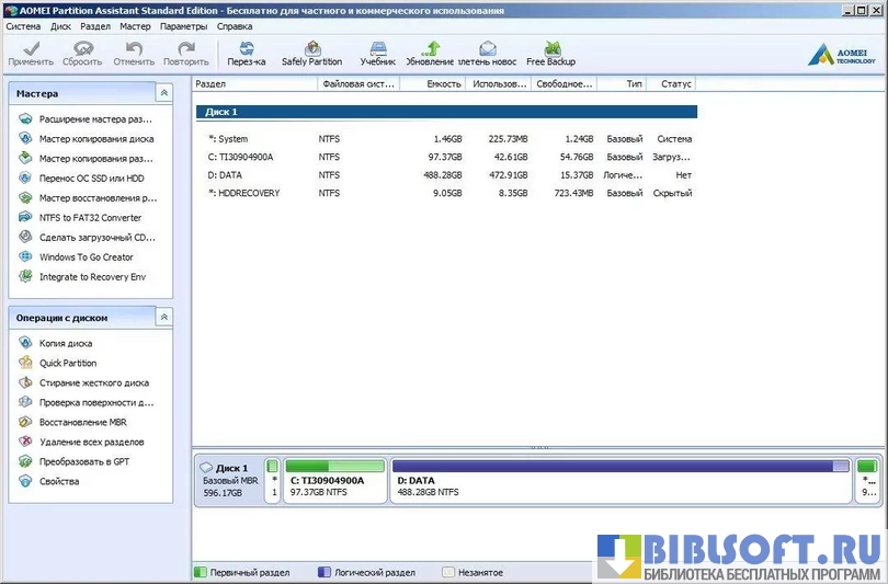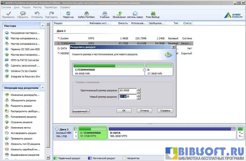 AOMEI Partition Assistant – утилита обеспечивающая эффективное управление логическими разделами жестких дисков, с сохранением находящейся на них информации.