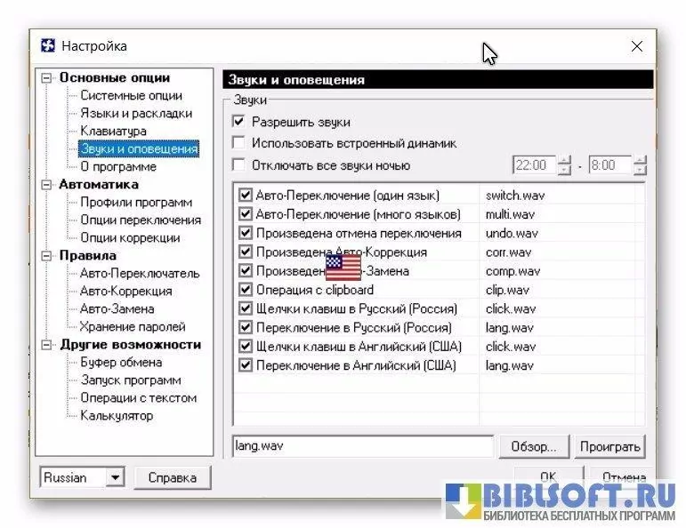 - звуковое сопровождение переключения раскладки;